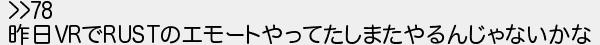 93: [sage] 2022/09/14(水) 09:36:20.66 >>78 昨日VRでRUSTのエモートやってたしまたやるんじゃないかな http://egg.5ch.net/test/read.cgi/streaming/1663115010/93