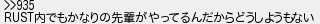 947: [sage] 2022/09/15(木) 00:15:48.44 >>935 RUST内でもかなりの先輩がやってるんだからどうしようもない http://egg.5ch.net/test/read.cgi/streaming/1663134234/947