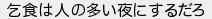 457: [sage] 2022/09/25(日) 16:09:01.30 ID:KkVplSP1H 乞食は人の多い夜にするだろ http://egg.5ch.net/test/read.cgi/streaming/1663275815/457