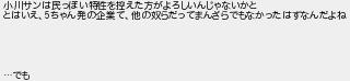 小川サンは民っぽい特性を控えた方がよろしいんじゃないかと とはいえちゃん発の企業て他の奴らだってまんざらでもなかったはずなんだよね でも