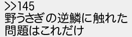 243: [sage] 2022/10/14(金) 12:36:00.60 >>145 野うさぎの逆鱗に触れた 問題はこれだけ http://egg.5ch.io/test/read.cgi/streaming/1665717841/243