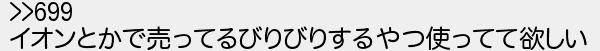 708: [sage] 2022/10/14(金) 12:58:11.69 >>699 イオンとかで売ってるびりびりするやつ使ってて欲しい http://egg.5ch.io/test/read.cgi/streaming/1665717841/708