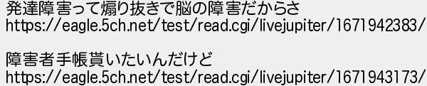 892: [] 2022/12/25(日) 13:43:40.61 発達障害って煽り抜きで脳の障害だからさ https://eagle.5ch.net/test/read.cgi/livejupiter/1671942383/ 障害者手帳貰いたいんだけど https://eagle.5ch.net/test/read.cgi/livejupiter/1671943173/ http://egg.5ch.io/test/read.cgi/streaming/1671341221/892