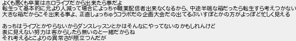 よくも悪くも卒業はホロライブだから出来たら事だよ 転生って基本的に元より人減って場合によっちゃ職業配信者出来なくなるから中途半端な箱だったら転生すら考えつかない 大きな箱だからこそ出来る事よ正直しょっちゅうコラボだの企画大会だの出てるぶいすぽとかの方がよっぽど忙しく見える あっちはライブとかやらないからダンスレッスンとかはそんなにやってないのかもしれんけど 表に見えない努力は客からしたら無いのと一緒だからね それ考えるとこよりの異常さが際立つんだが