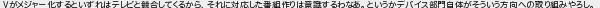 がメジャー化するといずれはテレビと競合してくるからそれに対応した番組作りは意識するわなあというかデバイス部門自体がそういう方向への取り組みやろし