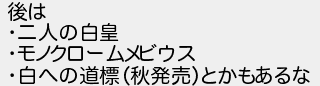 後は 二人の白皇 モノクロームメビウス 白への道標秋発売とかもあるな
