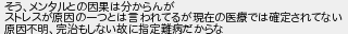 そうメンタルとの因果は分からんが ストレスが原因の一つとは言われてるが現在の医療では確定されてない 原因不明完治もしない故に指定難病だからな