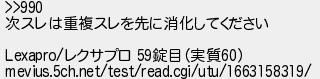 次スレは重複スレを先に消化してください レクサプロ 錠目実質