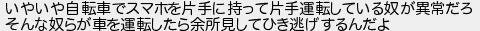 いやいや自転車でスマホを片手に持って片手運転している奴が異常だろ そんな奴らが車を運転したら余所見してひき逃げするんだよ