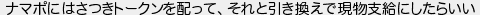 ナマポにはさつきトークンを配ってそれと引き換えで現物支給にしたらいい