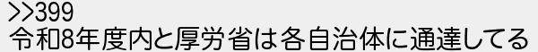 400: (ワッチョイ a92f-7eXM) [] 2026/04/05(日) 00:40:14.12 ID:HpS6gp/H0 >>399 令和8年度内と厚労省は各自治体に通達してる http://mevius.5ch.io/test/read.cgi/utu/1771663646/400