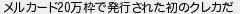 メルカード万枠で発行された初のクレカだ