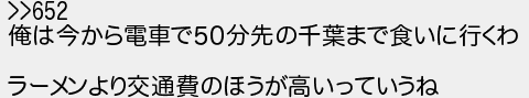 俺は今から電車で50分先の千葉まで食いに行くわ ラーメンより交通費のほうが高いっていうね