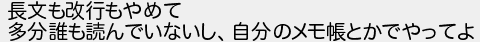 長文も改行もやめて 多分誰も読んでいないし自分のメモ帳とかでやってよ