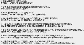 確実な継続力と持続力がある ダイエット日で終了するほど根気がない 目標達成のために密な計画を立てコツコツと続けられる 計画も適当だし長く続いても数ヶ月 全ての作業を着実にこなし後悔しない 何を始めても中途半端で投げっぱなし常に後悔の連続 強い責任感を持ちこうなりたいという目標に向けて真に取り組む 責任感の欠片もない自分に裏切られたと逃げる日 一度決めたことは最後までやり遂げる責任感があり困難な課題にも諦めずに取り組む 楽な事や自分の好きな事ばかり優先して困難に立ち向かう事を避ける逃げる 自分の弱点を理解し他人からのアドバイスも積極的に受け入れそれを補うための努力を惜しまない 視聴者アドバイスは無視ウザいとブロックする卑怯さ 細かい配慮が行き届き直感や感覚ではなく何よりも正確性と確実性を重視する 俺はこう思うという感覚のみで進めてる正確性を客観的に見る事はほぼない指摘も無視 計画の進捗状況に応じて適切なフィードバックを求めて修正する 状況判断が自己中心的利己的で甘進捗中にフィードバックからの修正をした試しがない