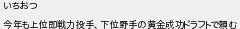 いちおつ 今年も上位即戦力投手下位野手の黄金成功ドラフトで頼む