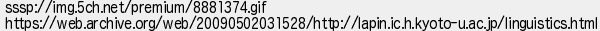 8: [sage] 2020/03/14(土) 00:18:35.57 ID:JtQ2djTR sssp://img.5ch.net/premium/8881374.gif https://web.archive.org/web/20090502031528/http://lapin.ic.h.kyoto-u.ac.jp/linguistics.html http://pug.5ch.net/test/read.cgi/diary/1583662300/8