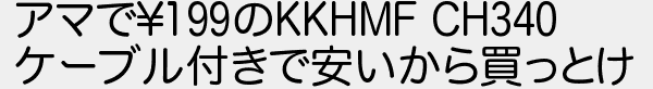 334: [sage] 2024/11/15(金) 01:46:09.64 アマで¥199のKKHMF CH340 ケーブル付きで安いから買っとけ http://egg.5ch.net/test/read.cgi/atom/1663644331/334