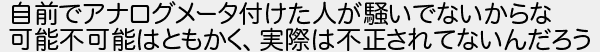 自前でアナログメータ付けた人が騒いでないからな 可能不可能はともかく実際は不正されてないんだろう