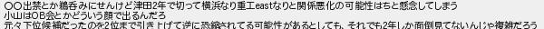 出禁とか鵜呑みにせんけど津田年で切って横浜なり重工なりと関係悪化の可能性はちと懸念してしまう 小山は会とかどういう顔で出るんだろ 元下位候補だったのを位まで引き上げて逆に恐縮されてる可能性があるとしてもそれでも年しか面倒見てないんじゃ複雑だろう
