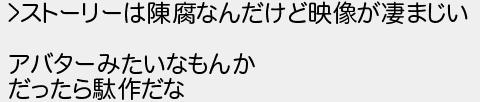 ストーリーは陳腐なんだけど映像が凄まじい アバターみたいなもんか だったら駄作だな