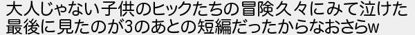 大人じゃない子供のヒックたちの冒険久にみて泣けた 最後に見たのがのあとの短編だったからなおさら