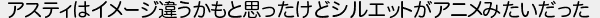 アスティはイメージ違うかもと思ったけどシルエットがアニメみたいだった
