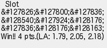 863: [sage] 2025/06/22(日) 11:43:16.63 ID:??? Slot 🍒🌸🍜 😜🎴💰 🍜💰💣 Win!! 4 pts.(LA: 1.79, 2.05, 2.18) http://mevius.5ch.net/test/read.cgi/kitchen/1644088717/863