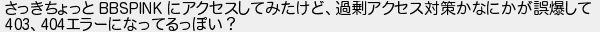 680: 警備員[Lv.212][UR武][UR防][木] [sage] 2025/10/02(木) 18:05:40.06 ID:cFpRm3Jz0 さっきちょっと BBSPINK にアクセスしてみたけど、過剰アクセス対策かなにかが誤爆して 403、404エラーになってるっぽい? http://egg.5ch.net/test/read.cgi/software/1748441663/680