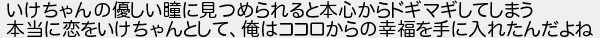 いけちゃんの優しい瞳に見つめられると本心からドギマギしてしまう 本当に恋をいけちゃんとして俺はココロからの幸福を手に入れたんだよね