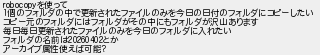 を使って 個のフォルダの中で更新されたファイルのみを今日の日付のフォルダにコピーしたい コピー元のフォルダにはフォルダがその中にもフォルダが沢山あります 毎日毎日更新されたファイルのみを今日のフォルダに入れたい フォルダの名前はとか アーカイブ属性使えば可能