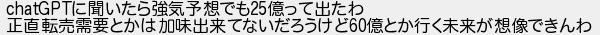 に聞いたら強気予想でも億って出たわ 正直転売需要とかは加味出来てないだろうけど億とか行く未来が想像できんわ