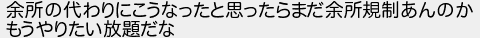 余所の代わりにこうなったと思ったらまだ余所規制あんのか もうやりたい放題だな