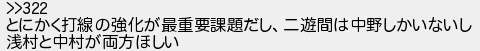 とにかく打線の強化が最重要課題だし二遊間は中野しかいないし 浅村と中村が両方ほしい