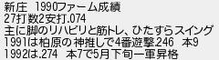 833: (ワッチョイ 3d55-RavF) [] 2022/09/16(金) 17:33:03.67 ID:mAwjjr2y0 新庄 1990ファーム成績 27打数2安打.074 主に脚のリハビリと筋トレ、ひたすらスイング 1991は柏原の神推しで4番遊撃.246 本9 1992は.274 本7で5月下旬一軍昇格 http://rio2016.5ch.net/test/read.cgi/base/1663155749/833