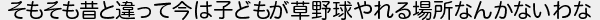そもそも昔と違って今は子どもが草野球やれる場所なんかないわな