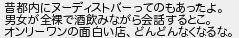 昔都内にヌーディストバーってのもあったよ 男女が全裸で酒飲みながら会話するとこ オンリーワンの面白い店どんどんなくなるな