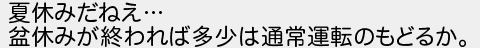 夏休みだねえ 盆休みが終われば多少は通常運転のもどるか