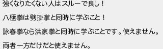 強くなりたくない人はスルーで良し! 八極拳は掛掌と同時に学ぶこと! 詠春拳なら洪家拳と同時に学ぶことです使えません 両者一方だけだと使えません