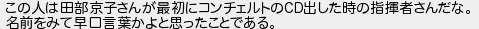 この人は田部京子さんが最初にコンチェルトの出した時の指揮者さんだな 名前をみて早口言葉かよと思ったことである