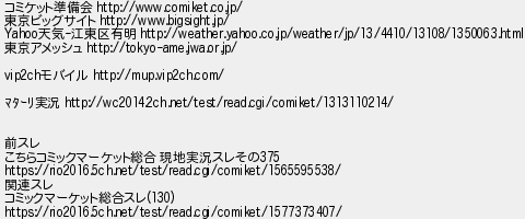 コミケット準備会 東京ビッグサイト 天気江東区有明 東京アメッシュ モバイル 実況 前スレ こちらコミックマーケット総合 現地実況スレその 関連スレ コミックマーケット総合スレ