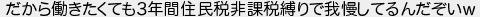 653: [sage] 2022/10/15(土) 22:30:13.96 ID:IXveiTzL0 だから働きたくても3年間住民税非課税縛りで我慢してるんだぞいw http://egg.5ch.net/test/read.cgi/debt/1663441773/653