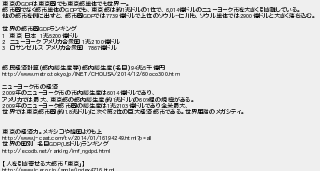 606: (やわらか銀行) [] 2017/06/20(火) 10:40:09.70 ID:OQZwAlzO 東京のGDPは東京圏でも東京都単体でも世界一。 都市圏でなく都市単体のGDPでも、東京都は約1兆ドルの1位で、6,014億ドルのニューヨーク市を大きく引き離している。 他の都市を例に出すと、都市圏GDPでは7739億ドルで上位のソウル-仁川も、ソウル単体では2900億ドルと大きく落ち込む。 世界の都市圏GDPランキング 1 東京 日本 1兆5200億ドル 2 ニューヨーク アメリカ合衆国 1兆2100億ドル 3 ロサンゼルス アメリカ合衆国 7867億ドル 都民経済計算(都内総生産等)都内総生産(名目)94兆5千億円 http://www.metro.tokyo.jp/INET/CHOUSA/2014/12/60oco300.htm ニューヨーク市の経済 2009年のニューヨーク市の市内総生産は6014億ドルであり、 アメリカでは最大、東京都の都内総生産(約1兆ドル)の60%程の規模がある。 2009年のニューヨーク都市圏の総生産は1兆2103億ドルであり全米最大、 世界では東京都市圏(約1.8兆ドル)に次ぐ第2位の巨大経済都市である。世界屈指のメガシティ。 東京の経済力。メキシコや韓国よりも上 http://www.j-cast.com/tv/2014/01/16194249.html?p=all 世界の国別 名目GDP(USドル)ランキング http://ecodb.net/ranking/imf_ngdpd.html 【人を引き寄せる大都市「東京」】 http://www.jcer.or.jp/angle/index4716.html http://egg.5ch.io/test/read.cgi/develop/1427705019/606
