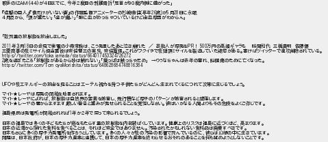 44: [] 2016/06/05(日) 16:54:30.12 ID:Uqgk3XTF 歌手のIZAM(44)が4日までに、今年2度目の剥離骨折「足首が90度内側に曲がった」 『進撃の巨人』『僕だけがいない街』の作画監督アニメーターの杉崎由佳(享年26歳)が5月28日に永眠 4月頃から、「頭が重たい」「歯が痛い」「服に血がめっちゃついているけど出血原因がわからん」 「致死量の放射能を放出しました」 2011年3月18日の会見で東電の小森常務は、こう発言したあと泣き崩れた / 芸能人が原発をPR! 500万円の高額ギャラも 勝間和代 三橋貴明 佐藤優 三菱商事の核ミサイル担当重役は安倍晋三の実兄、安倍寛信。これがフクイチで核弾頭ミサイルを製造していた疑惑がある。書けばツイッターで速攻削除されている。 https://twitter.com/toka iamada/status/664017453324726272 2歳を過ぎたころ「放射能があるから砂は触れない」「葉っぱは触っちゃだめ」 →りうなちゃんは去年の暮れ、脳腫瘍のために亡くなった。 https://twitter.com/Tom oyaMorishita/status/648628684748816384 UFOや核エネルギーの放出を見ることはエーテル視力を持つ子供たちがどんどん生まれてくるにつれて次第に生じるでしょう。 マイト★レーヤは原発の閉鎖を助言されます。 マイト★レーヤによれば、放射能は自然界の要素を妨害し、飛行機など原子のパターンが妨害されると墜落します。 マイト★レーヤの唇からますます厳しい警告と重みが発せられることを覚悟しなさい。彼はいかなる人間よりもその危険をよくご存じです。 福島県民は発電所が閉鎖されれば1年か2年で戻って来られるでしょう。 日本の福島では多くの子どもたちが癌をもたらす量の放射能を内部被ばくしています。健康上のリスクは福島に近づくほど、高まります。 日本の近海から採れた食料を食べることは、それほど安全ではありません。汚染されたかもしれない食料品は廃棄すべきです。 日本もさらに多くの原子力発電所を作ろうとしています。多くの人々が核の汚染の影響で死んでいるのに、彼らは幻想の中に生きています。 問題は、日本政府が、日本の原子力産業と連携して、日本の原子力産業を終わらせるおそれのあることを何も認めようとしないことです。 http://egg.5ch.io/test/read.cgi/develop/1464996989/44