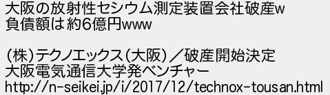 大阪の放射性セシウム測定装置会社破産 負債額は約6億円 株テクノエックス大阪破産開始決定 大阪電気通信大学発ベンチャー