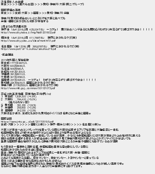 831: (空) [] 2018/02/06(火) 05:37:52.39 ID:TnEHiMae 没落日本人の妄想 東京>>>>(異次元の壁)>>>愛知・神奈川・大阪(第二グループ) 国際評価の現実 東京>>>京都・大阪>>福岡>>>愛知・神奈川・兵庫 神奈川・愛知は都合のいいところだけを大阪と比べても 兵庫・福岡に抜かされた統計が存在する 2月までの取扱量統計 神戸港 1〜2月 425,004TEU ←スゲェ! 震災後のハンデあるにも関わらうわずか2年足らずで2県ゴボウ抜き!!!!! http://www.city.kobe...t/img/No81201602.pdf 横浜港 1〜2月 411,768TEU 神戸に抜かれるクズ(笑) http://www.city.yoko...cs/data/month/01.pdf 名古屋港 1〜2月 395,678TEU 神戸に抜かれるクズ(笑) http://www.port-of-n...kuhou/sokuhou2-6.pdf ・航空輸送 2015年外国人宿泊者数 東京都 1777万9970人 大阪府 933万8480人 北海道 548万580人 京都府 481万1200人 沖縄県 391万8010人 千葉県 347万8190人 福岡県 237万8210人 ←スゲェ! わずか2年足らずで2県ゴボウ抜き!!!!! 愛知県 224万5450人 福岡に抜かれるクズ(笑) 神奈川県 217万2550人 福岡に抜かれるクズ(笑) http://www.mlit.go.j...common/001121073.pdf 平成29年基準地価 商業地の平均(円/m2 1 東京都 1,824,500 (+4.9%) 2 大阪府 764,400 (+5.0%) (越えられない壁) 5 愛知県 391,200 (+2.4%) 7 兵庫県 255,800 (+0.2%) 8 福岡県 242,200 (+2.3%) 大阪は遙か彼方、京都にも抜かれ愛知のライバルは名実ともに兵庫と福岡w 国際会議 https://www.jnto.go....s/pdf/20170519_5.pdf 京都・大阪>>>>>>福岡(23件)>>神戸・横浜(21件)>>>>名古屋(16件)w 大阪人が東京へのコンプレックスを言っている間に大阪は成長するアジアを武器に大陸経済と一体化 韓国中国も日本より欧米の格付けが上に成り日本より世界の立場が上になる そして大阪が強い中国韓国と一体化しているのが現実 、少なくとも中国韓国人には大阪が東京より上の格付けに萎える 弱虫の現実逃避する日本人が都合の良い指標だけ見て神奈川愛知が大阪より上とかポジティブとかほざいても 重要な国際評価の格付けからしたら神奈川愛知は大阪どころか兵庫や福岡にも負けているのが現実 もう日本は一極集中と現実逃避、中国韓国の異常な目の敵にしている間に 韓国に抜かされたのは本当に面白い 東京・神奈川・愛知がこのままアジアの成長と一体化する大阪・兵庫・福岡に 軒並みひっくり返されているのが現状です このような現実から逃避し、日本マンセー、東京マンセー、トヨタマンセーと言っている 日本人はある意味幸せな民族なのかもしれませんw 福岡より格下の烙印を世界に押された神奈川・愛知のライバルは実情兵庫県というのが厳しい現実ですw ちなみに神奈川県の経済力は一人当たりで兵庫県にすら負けてます。 http://egg.5ch.io/test/read.cgi/develop/1464996989/831