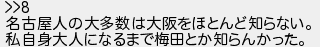 名古屋人の大多数は大阪をほとんど知らない 私自身大人になるまで梅田とか知らんかった