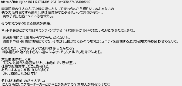 [過去ログ] 神戸、京都、大阪摂津は泉州・和歌山と一緒にされたくない★ [無断転載禁止]©2ch.net (1002レス)