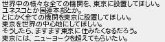 世界中の様な全ての機関を東京に設置してほしい ユネスコとか国連本部とか とにかく全ての機関を東京に設置してほしい 東京を世界の中心地にしてほしい そうしたらますます東京に住みたくなるだろう 東京にはニューヨークを超えてもらいたい