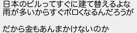 日本のビルってすぐに建て替えるよな 雨が多いからすぐボロくなるんだろうが だから金もあんまかけないのか
